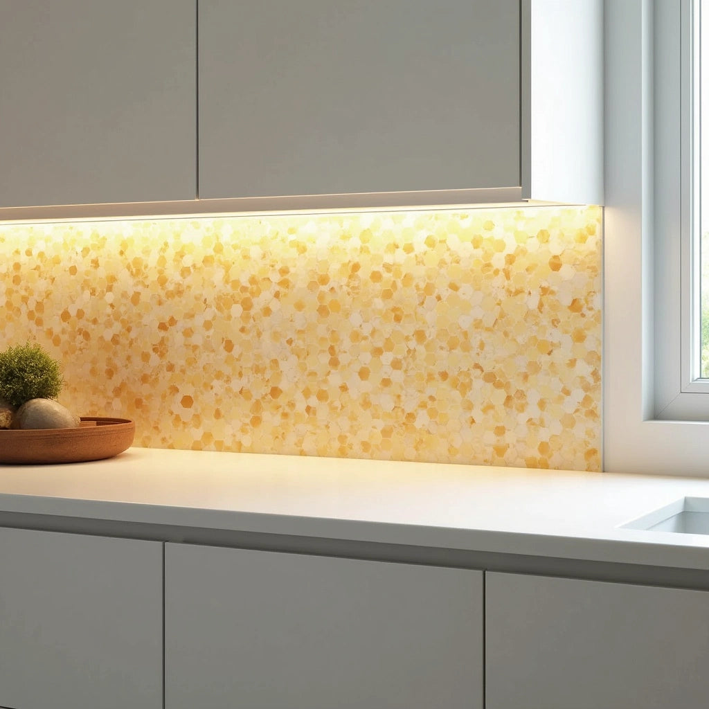 Giallo Crystal Honey Onyx Octagon Mosaic (w/ White) Polished