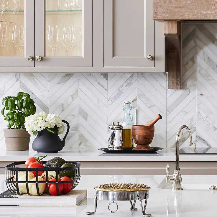 Transform your kitchen into a masterpiece with the captivating allure of Calacatta marble backsplash tiles.