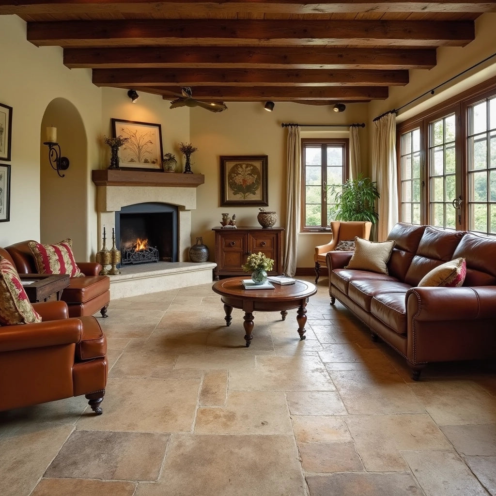 Ivory (Light) Travertine Mini-Versailles Mosaic Tumbled